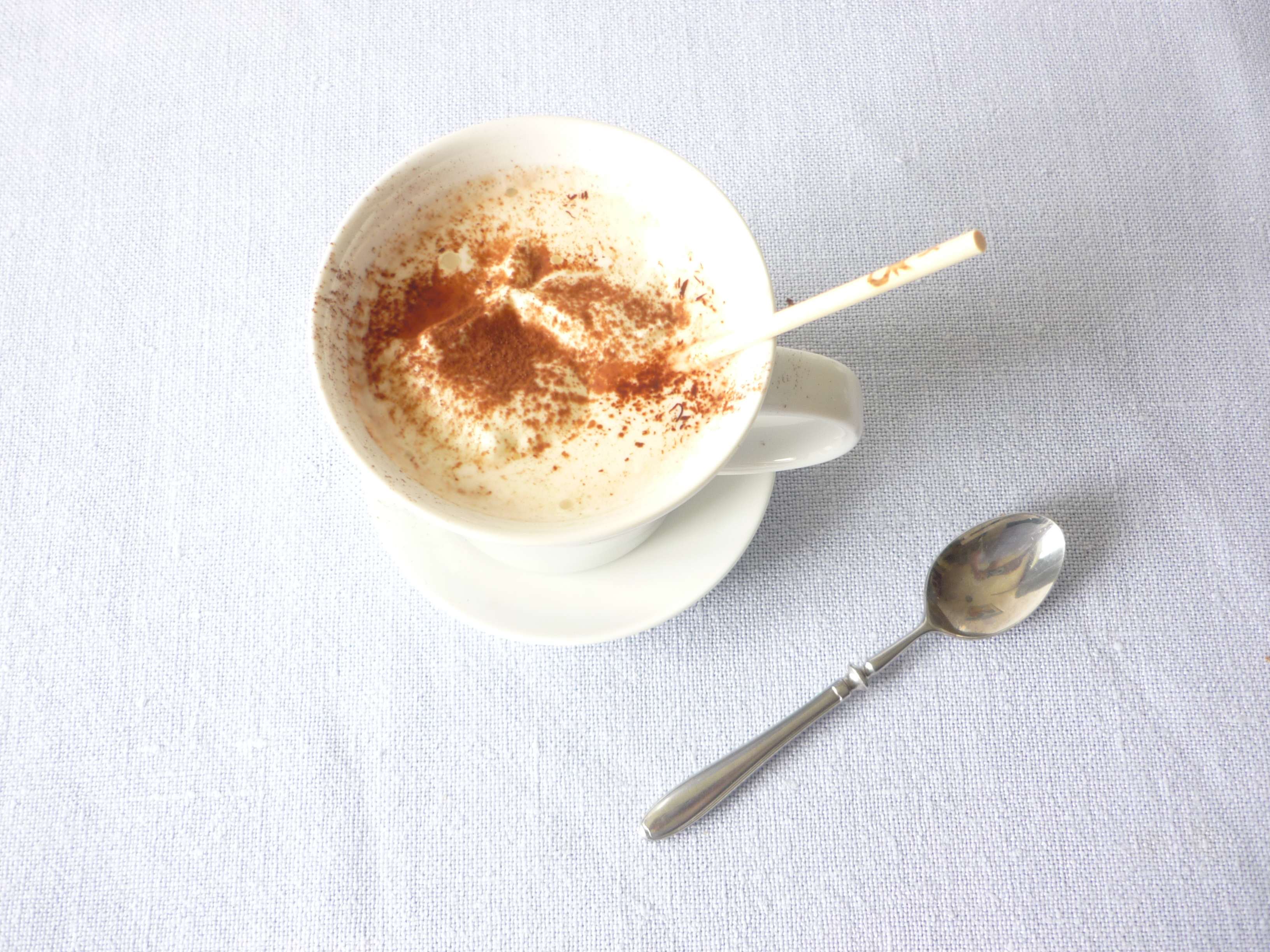 Die Zubereitung ist eigentlich ganz einfach (es geht schließlich um Lebensverschönerung, nicht stundenlanges Kochen): Milch aufkochen, nebenher Sahne schlagen, Schokolade in die kochende Milch, ein bisschen hin und herrühren, eine Haube Schlagsahne auf die Schoki-Milch und zuletzt ein bisschen Kakao oben drauf streuen. Fertig.