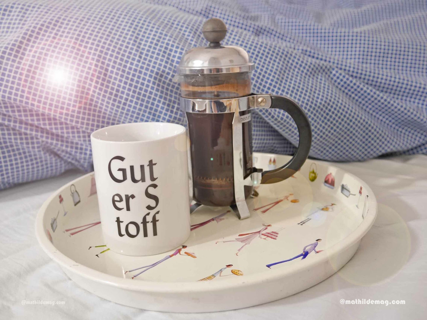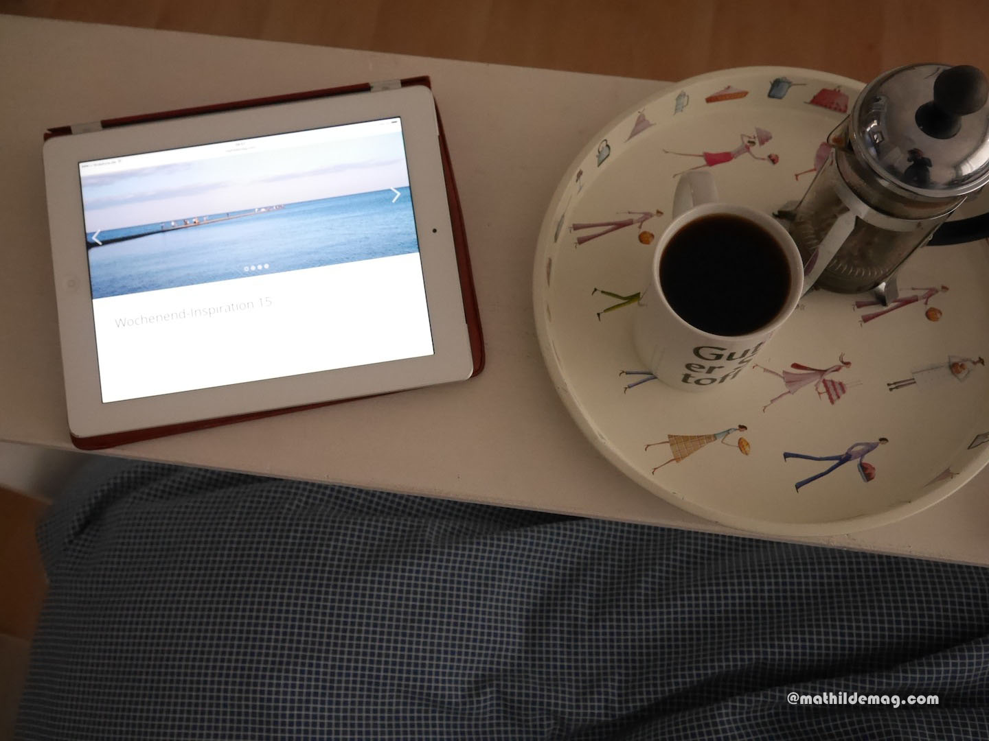Eins: Jedenfalls fange ich Sonntag, den 12. mit Kaffeetrinken im Bett an. Schließlich ist Sonntag, da muss das sein.