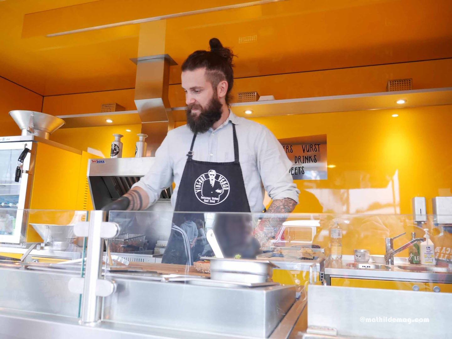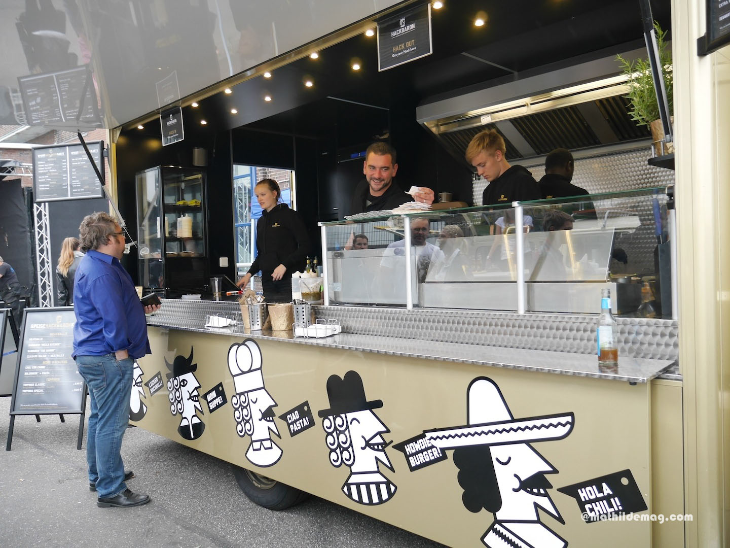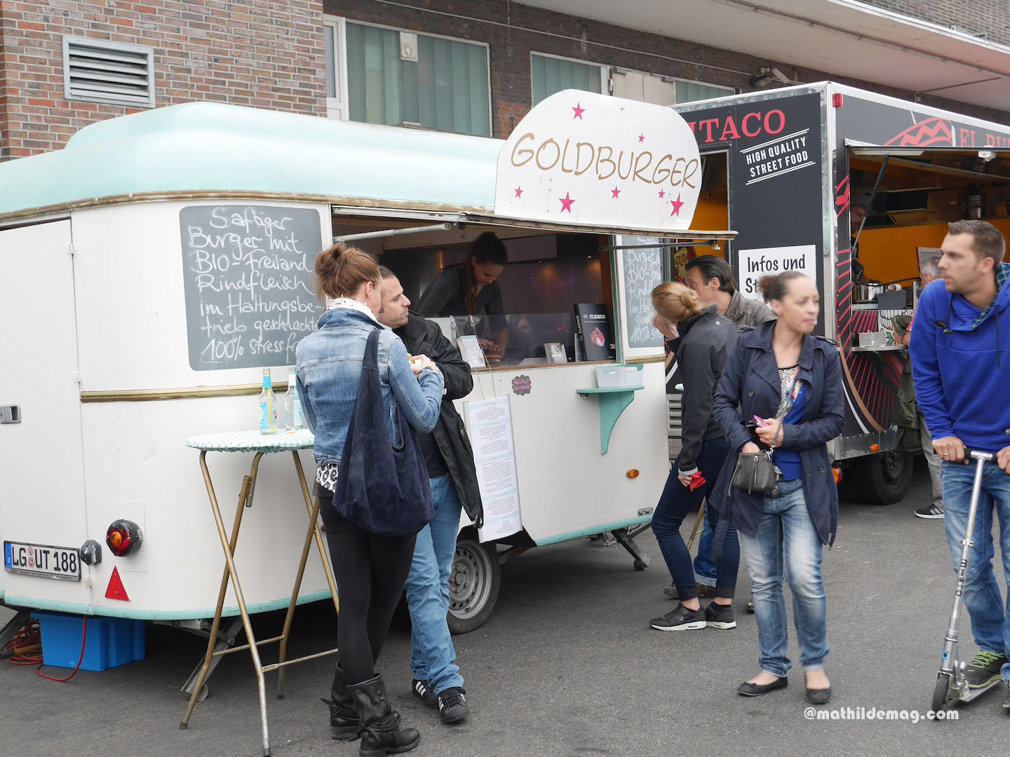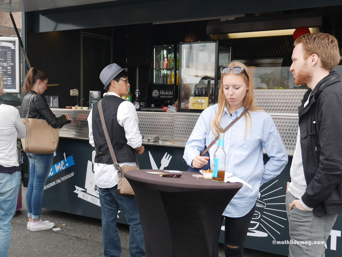 Vier: Danach Foodtruck-Treffen auf der Schanze. Nach einem ersten Rundgang entscheiden wir uns für Süßkartoffel-Fritten. Sie finden die Reihenfolge aus erst Erdbeertörtchen und dann Fritten komisch. Das muss so, glauben Sie mir, der 12. ist schließlich ein orientierungsloser Sonntag.
