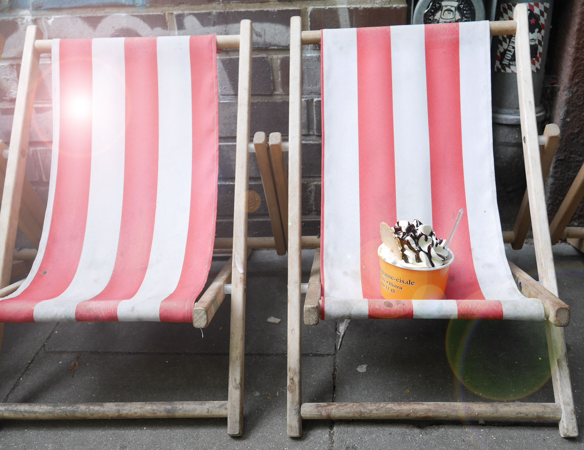 Das Eis: Okay! Ich habe Sanddorn-Eis, Stracciatella, plus Sahne und Schokosoße genommen. Das war in Ordnung, nur die Sahne hat ein bisschen stark nach Fertigprodukt geschmeckt.