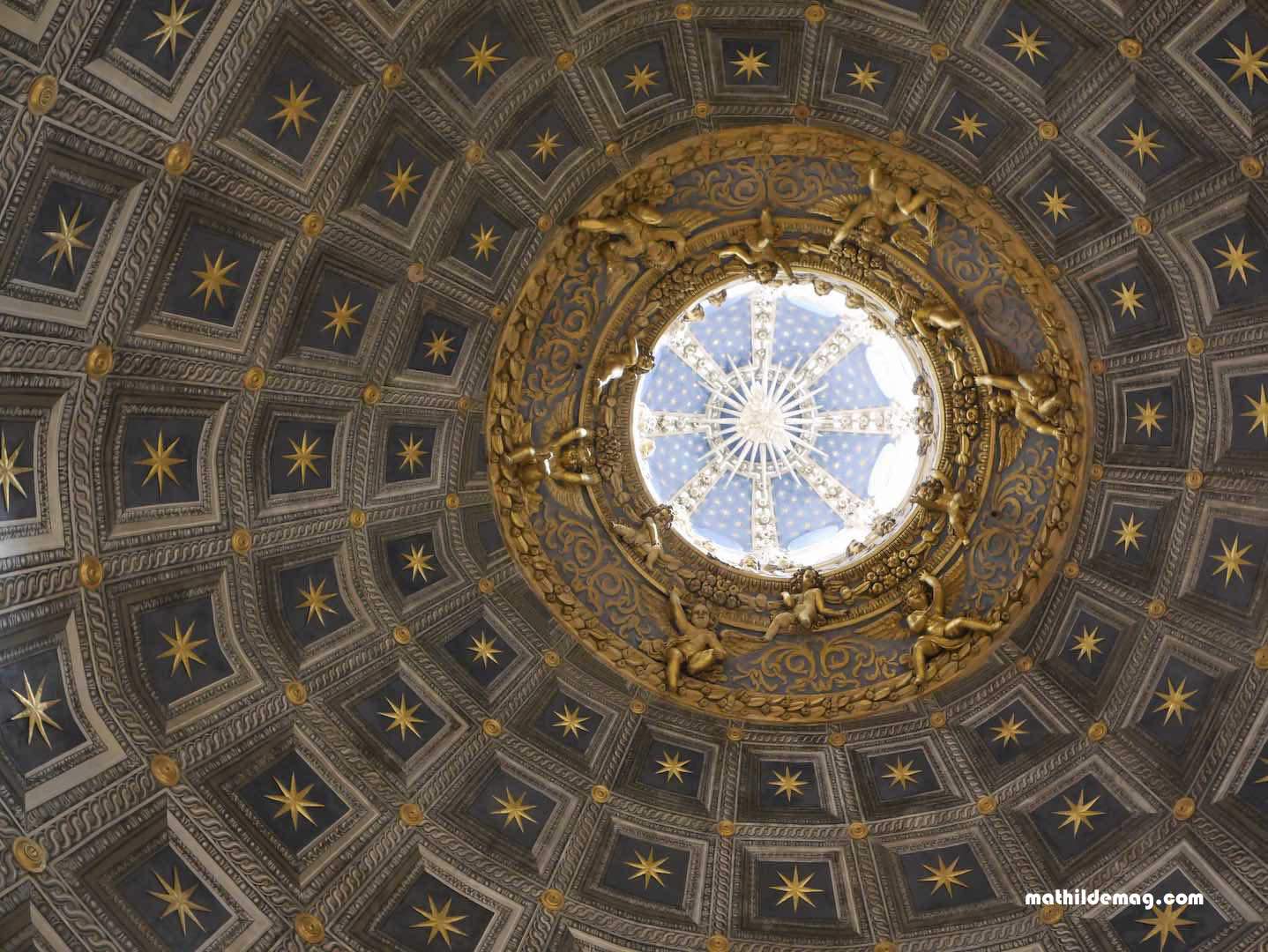 Aus allen möglichen Winkeln der Stadt habe ich schon Tage vorher die schwarz-weiße Cattedrale di Santa Maria Assunta entdeckt. Prächtig reckt sich die dreischiffige Kathedrale über die ockerfarbenen Ziegeldächer. Innen sieht das gotische Mittelschiff und die beiden flacheren Seitenschiffe, die prächtige Kuppel hoch über unseren Köpfen und der in graphische Mosaiken gelegte Boden noch prächtiger aus. Allein die vielen Touristen und ich, wir stören die stille Pracht und Herrlichkeit doch erheblich mit all unserem Getuschel, Gewusel, Geraschel und Geknipse. Von Zeit fordert uns eine tiefe Stimme aus dem Off auf, Ruhe zu bewahren. Es ist schließlich eine Kirche, auch wenn man sich bisweilen vorkommt wie auf dem Hauptbahnhof von, sagen wir, Florenz.